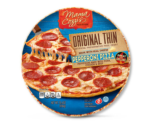 Imported Mama Cozzi’s Frozen Pepperoni Pizza 12″ prepare in oven.